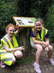 young volunteers helping to install biodiversity signage along the routee